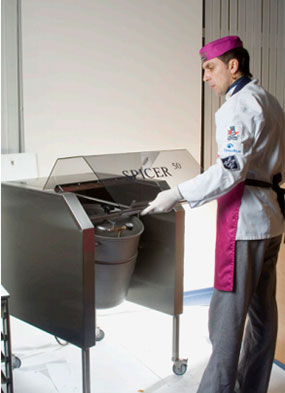 Пластиковая крышка закрывает барабан – Spicer готов к работе. Наличие подобного элемента выгодно отличает этот аппарат от промышленных аналогов: защищает от невнимательного персонала и придает оборудованию красивый, современный вид.