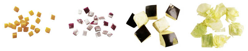 Возможность нарезки кубиками размерами от 5 до 25 мм, а также нарезки салата на кубики размером 50х70х25 мм.