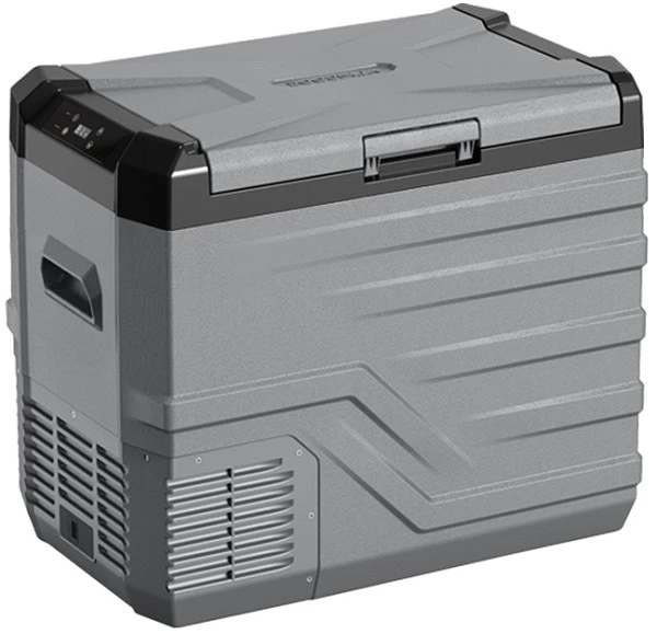 Высокопроизводительный компрессор, работающий от бортовой сети 12/24 В, поддерживает температурный диапазон от +20 до -20 °C. Чтобы быстро заморозить содержимое можно включить режим MAX, при котором аппарат функционирует на максимальной мощности, а функция ECO направлена на экономичный расход энергии.