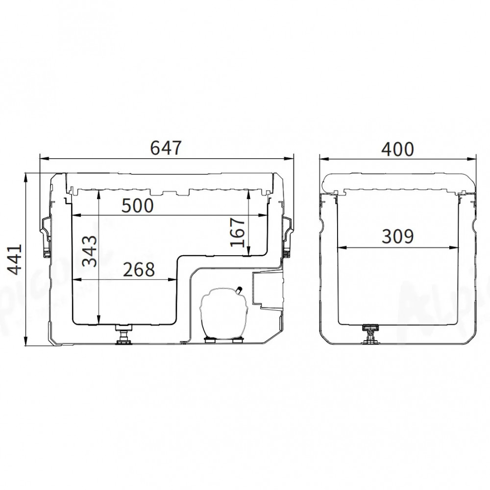 Alpicool TS40 (12/24) рассчитан на использование в дороге. Его корпус изготовлен из прочного пластика, устойчивого к ударам, вибрации и солнечному нагреву. Боковые ручки облегчают переноску даже при полной загрузке. Крышка закрывается плотно и не болтается при движении. Для вашего удобства внутри камеры — две корзины для хранения продуктов.