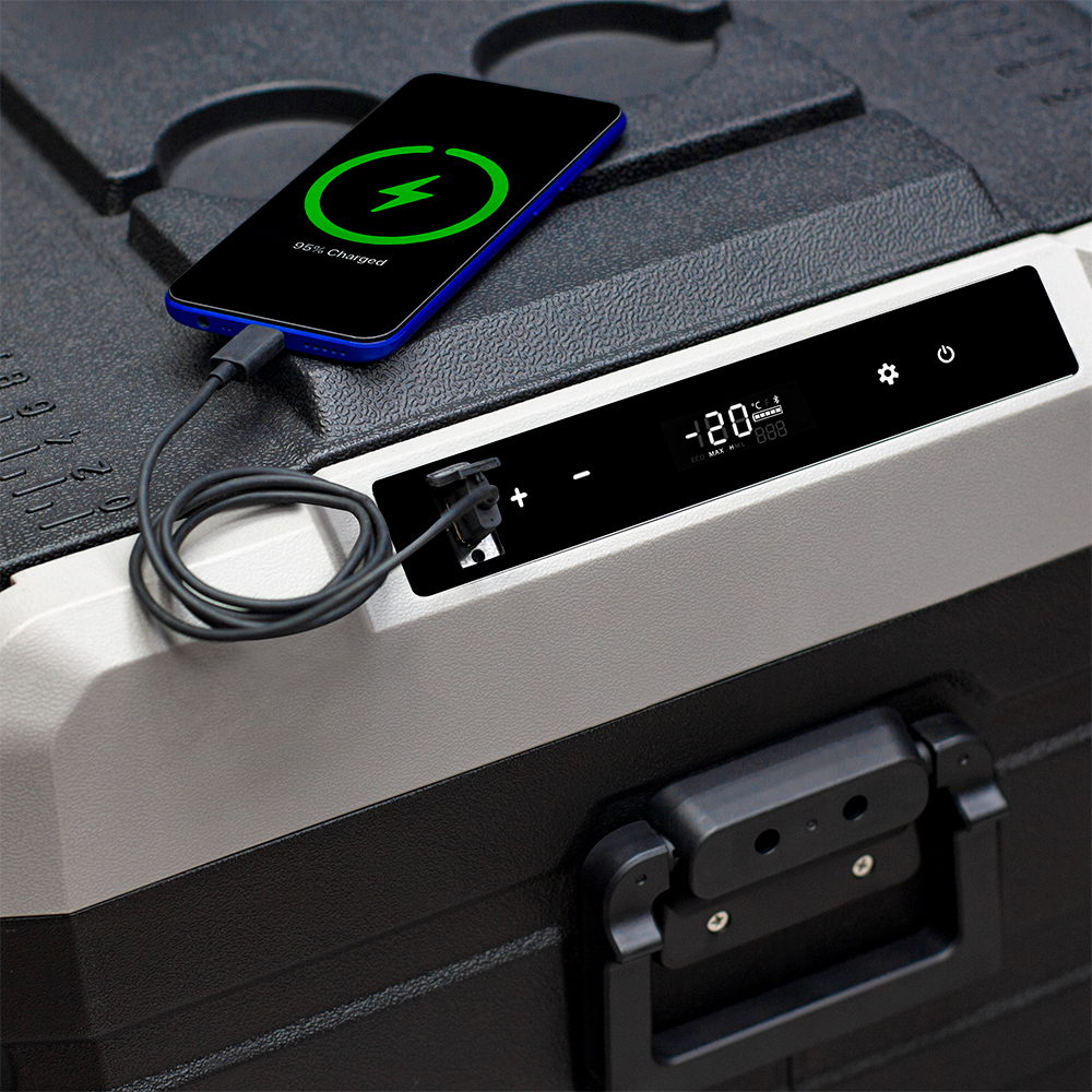 Встроенная подсветка внутри камеры помогает находить продукты даже в полной темноте. Также на панели управления есть USB-порт — для зарядки смартфона, фонарика или навигатора. Мелочь, но полезная в дороге или на природе.