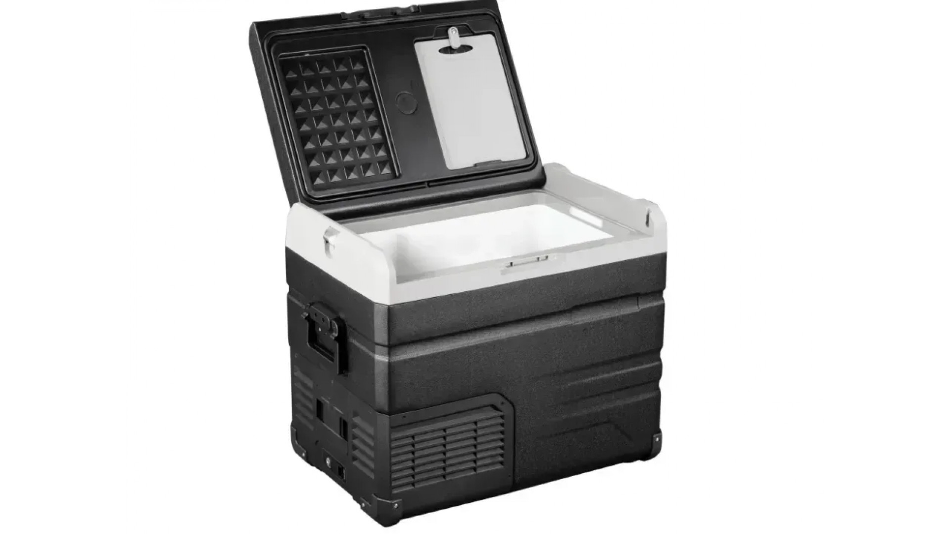 Alpicool TS50 (12/24) рассчитан на использование в дороге. Его корпус изготовлен из прочного пластика, устойчивого к ударам, вибрации и солнечному нагреву. Боковые ручки облегчают переноску даже при полной загрузке. Крышка закрывается плотно и не болтается при движении. Для вашего удобства внутри камеры — две корзины для хранения продуктов.