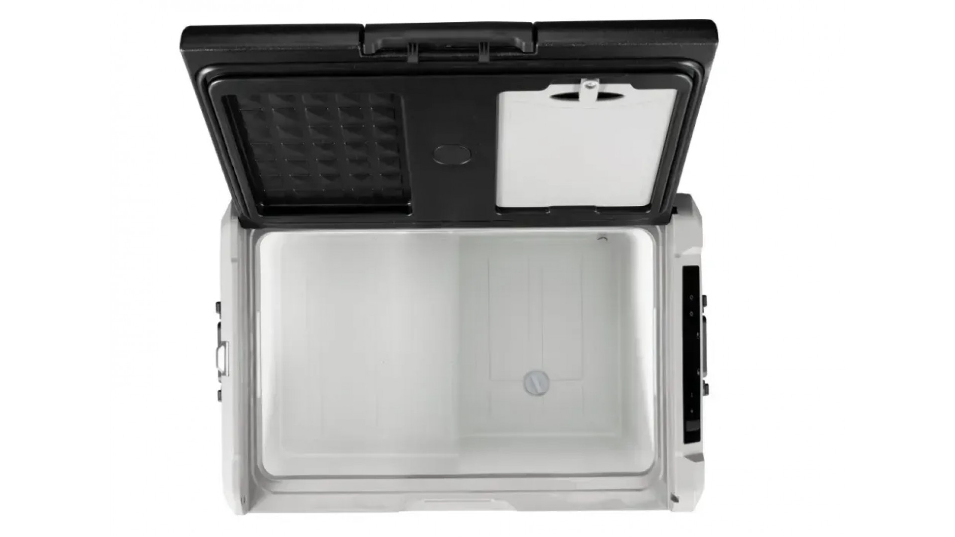 Внутренний объём в 60 литров подходит для длительных поездок: внутрь легко помещаются напитки, свежие продукты, полуфабрикаты и всё необходимое на несколько дней. Стенки гладкие, без лишних выступов — удобно мыть и не скапливается грязь. Для удобной очистки предусмотрена сливная пробка — после разморозки или мойки не нужно переворачивать холодильник: просто откройте заглушку, и вода уйдёт сама.