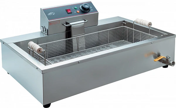 Масло с поддона свободно стекает обратно в емкость, делая изделия менее жирными, а расход фритюра более экономичным.
