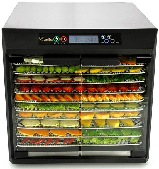 Дегидратор сушилка Excalibur EXC10ELF предназначен для сушки различных продуктов: овощей, фруктов, ягод, грибов, зелени. Также используются для приготовления пастилы, хлебцев, сушеного мяса и рыбы. Сушка продуктов осуществляется за счёт обдува теплым воздухом – аналогично процессу на открытом воздухе. Благодаря деликатной работе устройства в растительных продуктах остается максимум витаминов и полезных микроэлементов, а после абсолютного удаления влаги – значительно увеличивается срок их хранения.