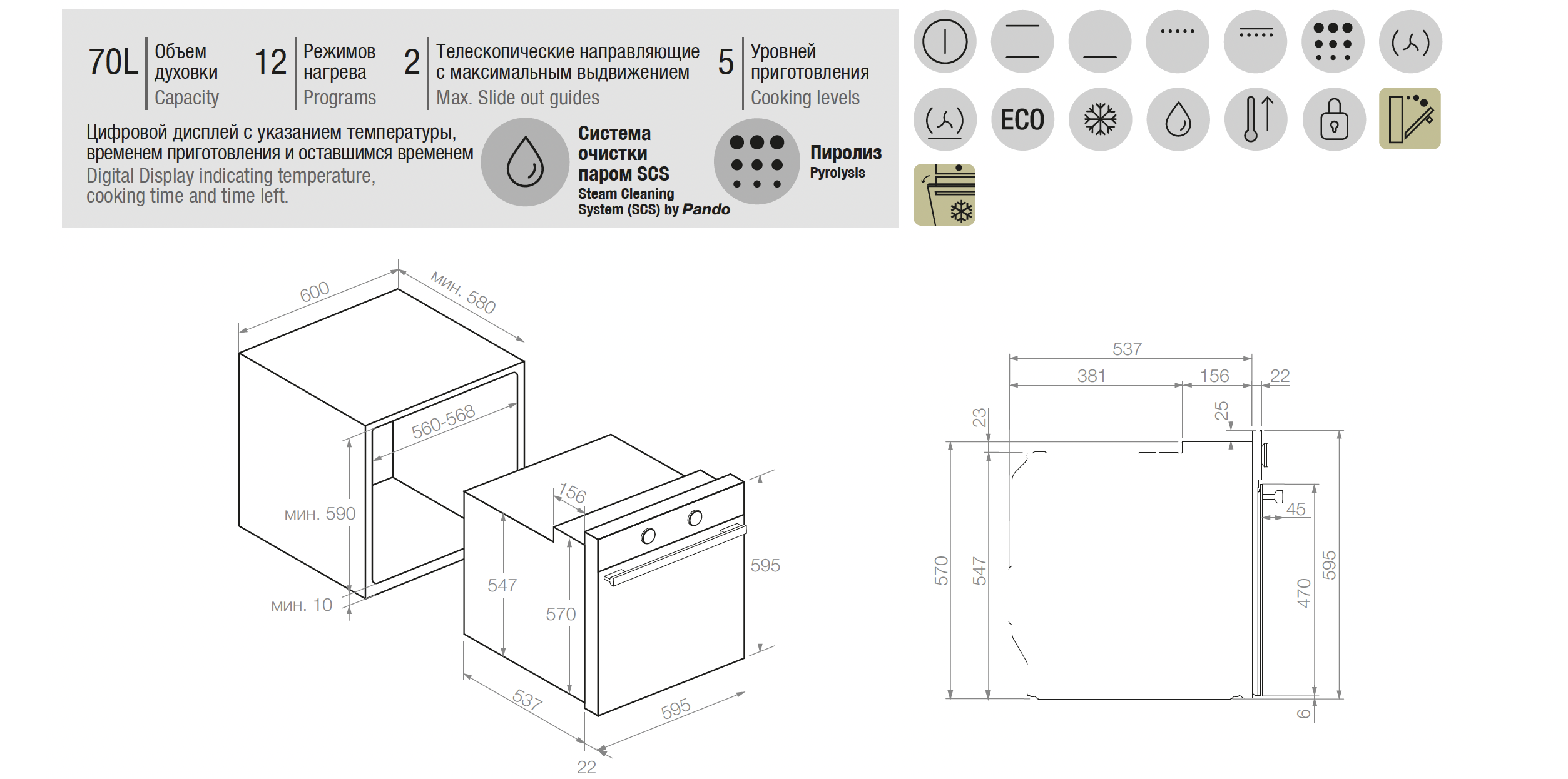 Духовой шкаф электрический Pando PHP-962 предназначен для приготовления большого ассортимента блюд в домашних условиях.