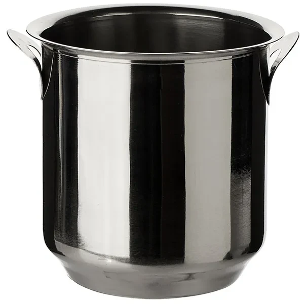 Серебряное ведерко для льда имеет минималистичный дизайн.