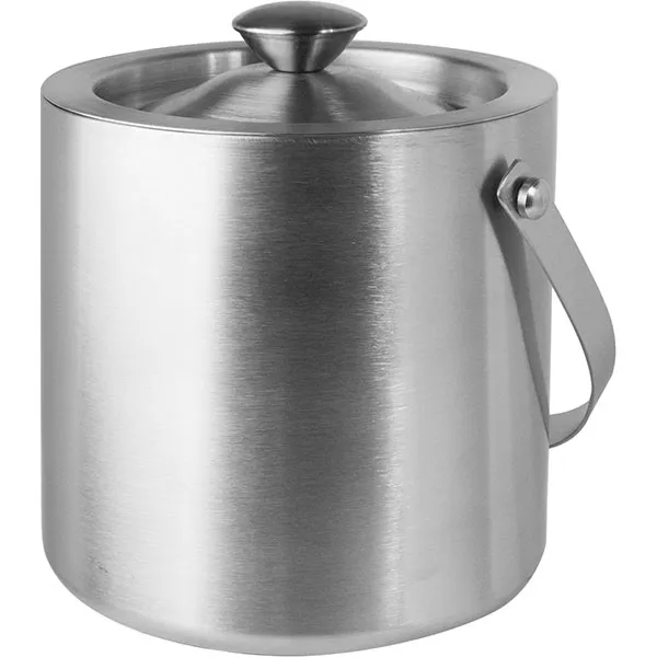 Серебряное ведерко для льда имеет минималистичный дизайн.