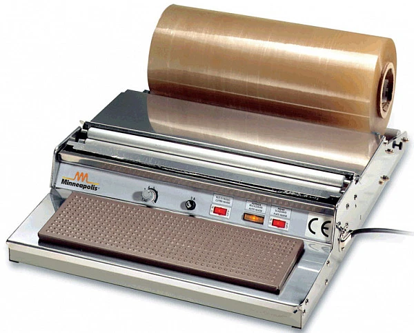 Отличительной чертой данной модели является простота в использовании и высокие показатели скорости упаковки. Упаковываемый товар размещается на оберточной поверхности и оборачивается стрейч-пленкой, которая после отрезается термоножем по следующему принципу – края пленки собираются и прижимаются к горячей поверхности, в результате чего пленка запаивается и плотно облегает продукт.
