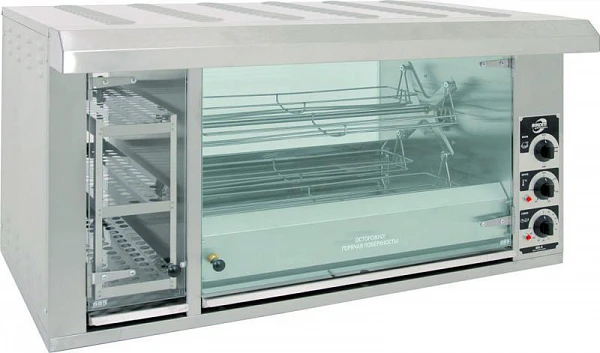 (!) Независимая дверца витрины и выдвижной стеллаж позволяют загружать и вынимать продукцию с любой полки, не нарушая тепловой режим камеры гриля