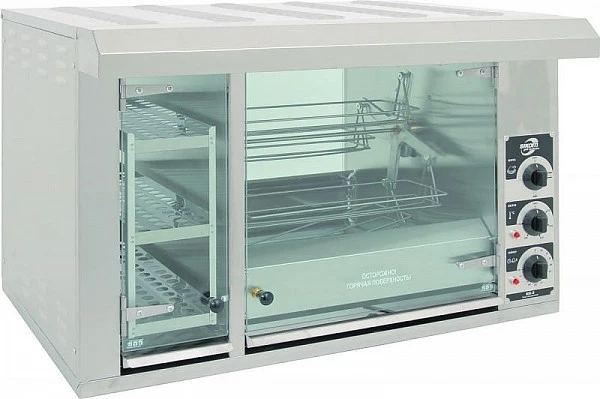 (!) Независимая дверца витрины и выдвижной стеллаж позволяют загружать и вынимать продукцию с любой полки, не нарушая тепловой режим камеры гриля