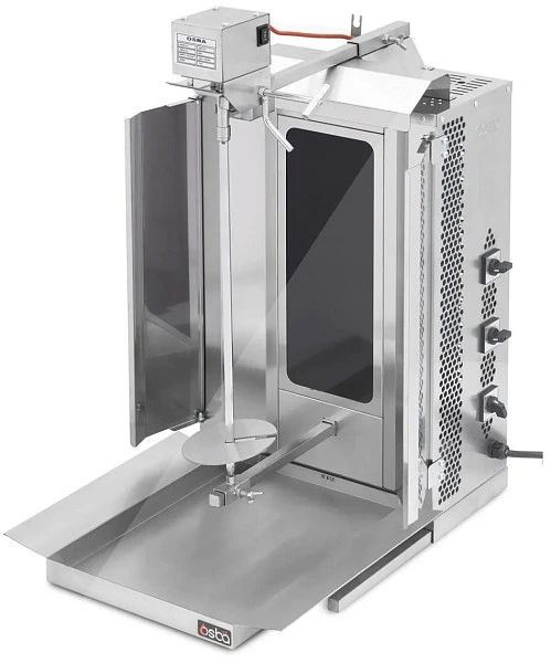 Гриль для шаурмы Osba MED-03E используется на кухнях различных заведений общественного питания: от ресторанов до точек быстрого питания, для приготовления мясной части блюда шаурма. Гриль предназначен для обжарки мясных заготовок цилиндрической формы, которые размещаются на вертикальный вертел, обеспечивая равномерное приготовление.
