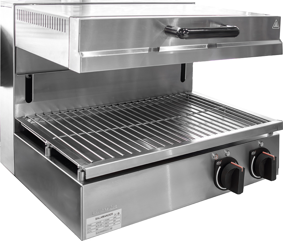 Гриль саламандра Rosso HSME-650 PRO предназначен для бесконтактного обжаривания и придания золотистой корочки рыбе, мясу, шаурме, сосискам и другим продуктам на предприятиях общественного питания и торговли. Также может использоваться для поддержания готовых блюд в нагретом состоянии.