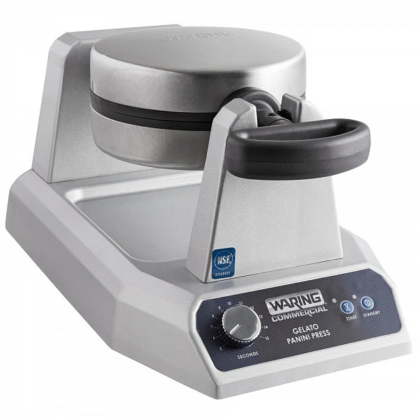 Вафельница для закрытых сэндвичей Waring WWGP180E Gelato Panini Press используется на предприятиях общественного питания и торговли для запечатывания замороженных десертов в булочке. Рабочие поверхности покрыты тройным антипригарным покрытием для простого извлечения готовых десертов и легкой очистки пластин. Вмонтированные в пластины нагревательные элементы обеспечивают точный контроль температуры и равномерное распределение тепла.