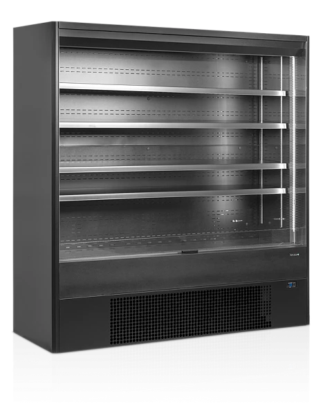 Серия холодильных горок с открытым фронтальным доступом, выполненных в черном цвете, — отличный выбор для магазинов, кафе, бутербродных, мясных лавок и мини-маркетов. Устройство имеет глубину всего 680 мм и идеально подходит для мест с ограниченным пространством, где необходимо максимально увеличить площадь охлаждаемой витрины. Полка в основании и 4 регулируемые полки обеспечивают достаточно места для хранения продуктов. Внутренние торцевые стенки из нержавеющей стали с зеркальной отделкой помогают создать ощущение пространства внутри шкафа, а яркая белая вертикальная светодиодная подсветка отлично освещает продукт. Температурный диапазон можно регулировать в соответствии с вашими потребностями, будь то свежее мясо, молочные продукты и безалкогольные напитки или пиво. Полки можно наклонять под углом от 2 до 20 градусов, что дает дополнительные возможности для выставления товаров (при наклоне полок требуются передние ограничители). Устройство оснащено роликами, позволяющими перемещать его для очистки, также возможна установка колесиков.