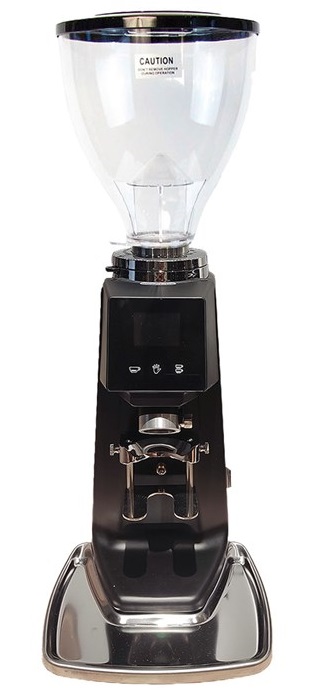 Модель оснащена сенсорным дисплеем, микрометрической регулировкой помола с помощью зажимного кольца, системой порционной дозировки с точностью до секунд, плоскими жерновами и удобным держателем холдера.
