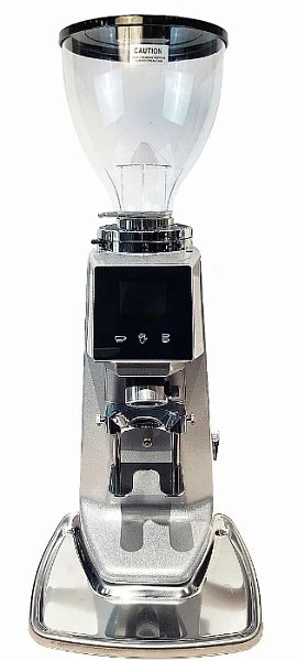 Модель оснащена сенсорным дисплеем, микрометрической регулировкой помола с помощью зажимного кольца, системой порционной дозировки с точностью до секунд, плоскими жерновами и удобным держателем холдера.