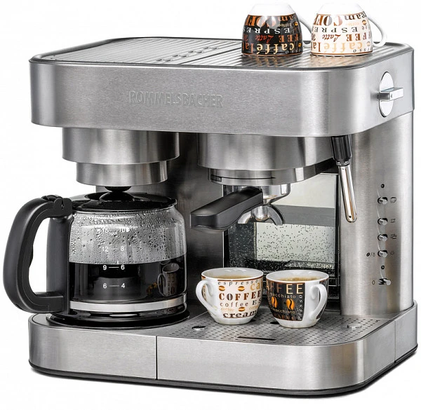 Кофеварка Rommelsbacher EKS 3010 позволяет приготовить эспрессо из молотых кофейных зёрен либо чалд.
