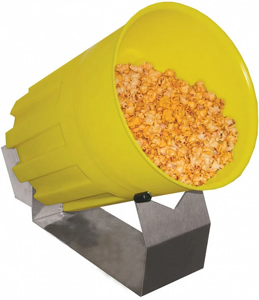 Коутер Gold Medal 2705EX для обработки готового попкорна пикантной смесью представляет собой платформу с двигателем и съёмным контейнером с крышкой. После обработки попкорна контейнер с готовым продуктом можно снять и использовать для хранения, продукт в контейнере остаётся свежим.