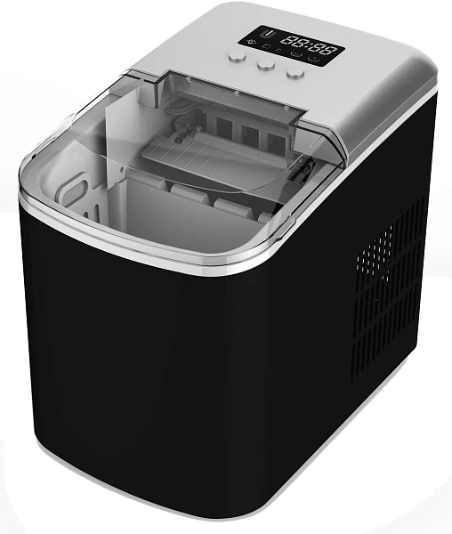 Генератор льда не требует подключения к водопроводу. Вода заливается в специальный резервуар, объем которого составляет 2,1 л. Готовый лед попадает в корзину, вмещающую до 1,5 л. Производительность ледогенератора – до 12 кг в сутки позволяет использовать этот аппарат дома, на даче, в мини-барах, небольших кофейнях, точках приготовления молочных коктейлей и свежевыжатых соков.