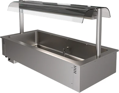 Мармит оснащен верхней стойкой, что позволяет использовать ее как дополнительный элемент линии раздачи, увеличив полезную площадь выкладки.