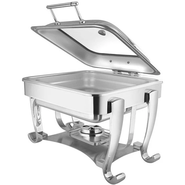 Мармит настольный (чефиндиш) прямоугольный cо стекл крышкой Maco 6,5л, 50x45x27см,Opulent OP/0/2/6.5/CP предназначен для поддержания в горячем состоянии готовых блюд на линиях раздачи в заведениях общественного питания, для кейтеринга и шведского стола.