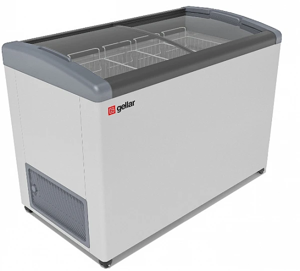 Морозильный ларь Gellar FG 400 E серый - надежный морозильный ларь средней величины с изогнутой крышкой для лучшего обзора замороженной продукции.