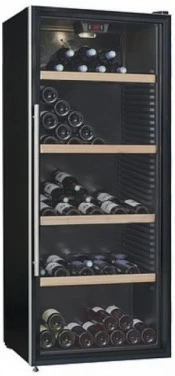 Винный шкаф Climadiff CLPG182/wood на 182 бутылки, энергетический класс D, электронное регулирование, 8-18°C, переключение из монотемпературного режима в мультитемпературный, 4 фиксированные металлические полки с деревянной фронтальной поверхностью, стеклянная дверь с АУФ-защитным покрытием и рамкой из нержавеющей стали, угольный фильтр, регулирование влажности с помощью камней из лавы, 2 регулируемые ножки + 2 колесика, система "Зима".