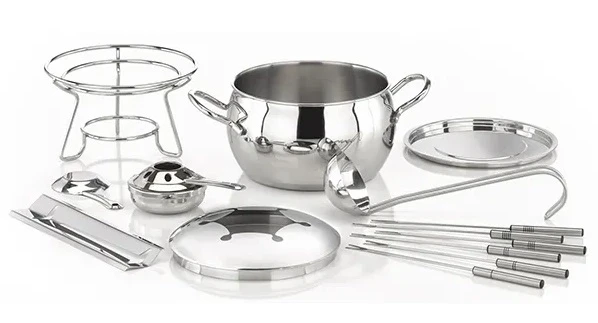 Набор для фондю APS 65060 используется на предприятиях общественного питания, а также в домашних условиях для приготовления традиционного фондю. Набор состоит из 13 предметов, изготовленных из полированной нержавеющей стали.