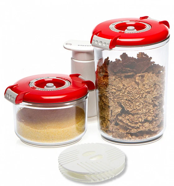Набор вакуумных контейнеров Status VAC-RD-Round Red используется для компактного хранения продуктов, позволяя экономить пространство.