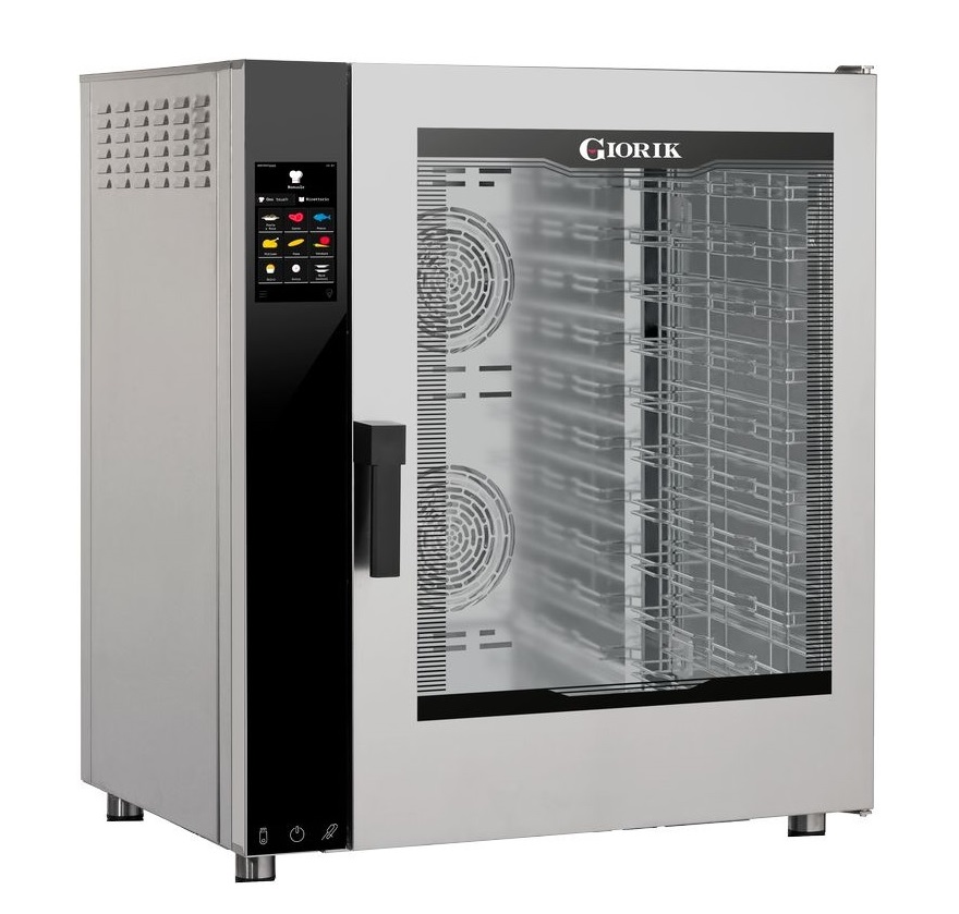 Пароконвектомат Giorik Movair NMTE10XW_R предназначен для приготовления широкого ассортимента блюд на предприятиях общественного питания. С помощью подобного оборудования можно выпекать сдобные изделия, пироги, готовить сочные стейки, рыбу на пару и т.д.