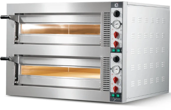Печь для пиццы Cuppone TP435/2CM с передней панелью и камерой выпечки из нержавеющей стали предназначена для приготовления пиццы и различных закусок, таких как, сэндвичи, куриные стрипсы и т.д. на предприятиях общественного питания.