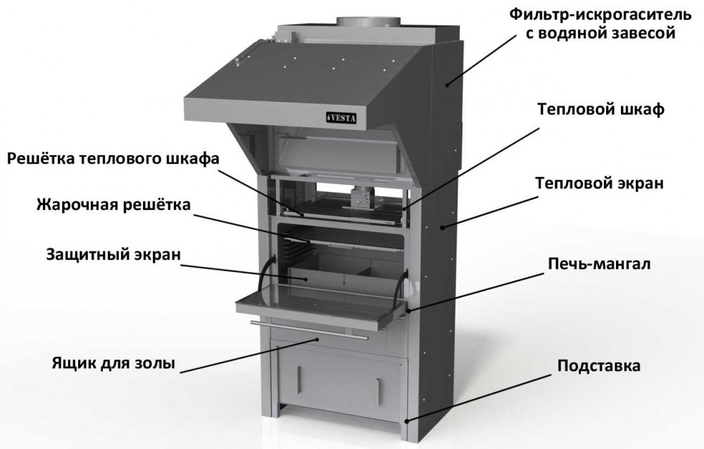 Печь на твердом топливе (хоспер) Vesta 25 N (корпус жарочной камеры из жаропрочной нержавеющей стали 6 мм) предназначена для работы на профессиональной кухне для приготовления блюда из мяса, овощей и морепродуктов на мангале в закрытом помещении.
