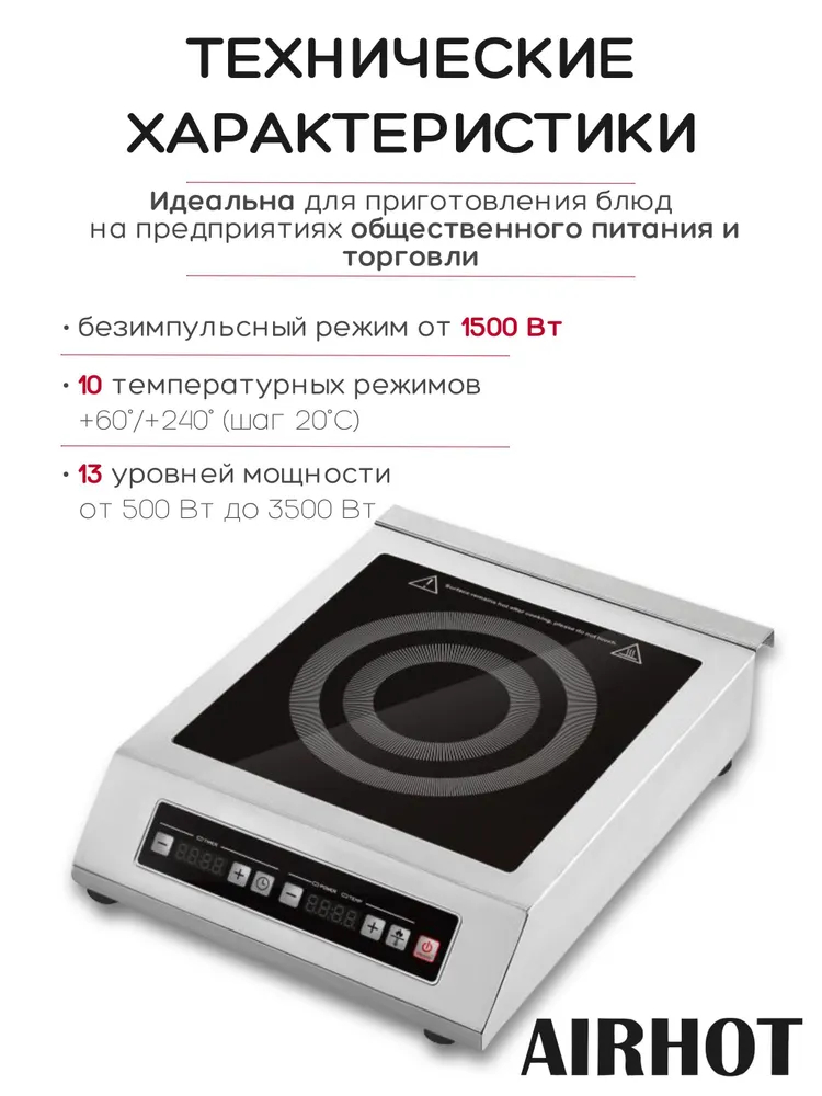 Плита индукционная AIRHOT IP3500 DS подходит для всех типов кухонь, удобна на презентациях и мероприятиях выездного обслуживания.