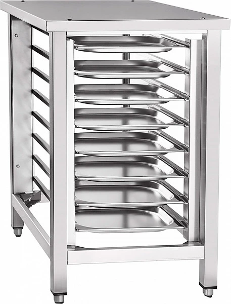 Подставка Abat ПК-6-13 является вспомогательным оборудованием и предназначена для установки мини-пароконвектомата ПКА6-1/3П на столешницу и размещения шести гастроемкостей GN 1/1 на держателях полок.