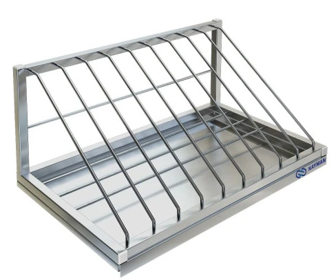 Полка для сушки досок Kayman ПНД-9-1 может быть размещена как над ванной моечной в моечном отделении, так и над производственным столом в кухонных цехах.