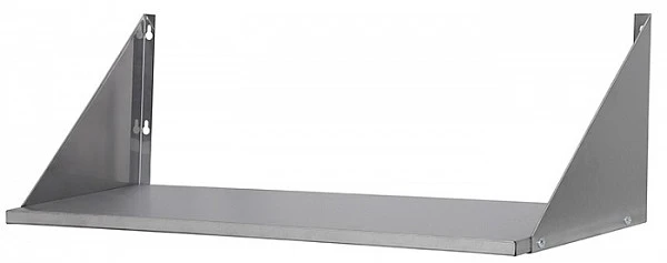 Полка настенная Luxstahl ПНК 6/4 сплошная из нержавеющей стали AISI 430 используется для хранения непортящихся продуктов и полуфабрикатов, а также кухонной посуды: сковородок, тарелок, кружек и прочего на предприятиях общественного питания.