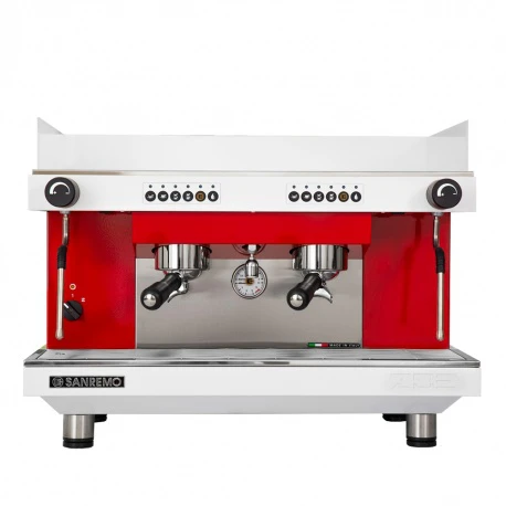 Рожковая кофемашина Sanremo Zoe SAP 2 GR бело-красная предназначена для приготовления эспрессо и других кофейных напитков в кофейнях, барах и ресторанах.