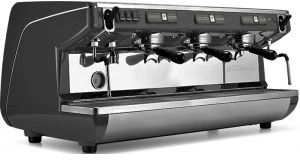 Рожковая кофемашина Nuova Simonelli Appia Life 3Gr S 220V черная+высокие группы+экономайзер (169073) с подключением к водопроводу предназначена для приготовления кофе эспрессо и капучино. Оснащена тремя высокими термокомпенсированными группами, экономайзером, краном для подачи горячей воды и двумя паровыми кранами из нержавеющей стали с системой PUSH&PULL. Бойлер изготовлен из меди с теплоизоляцией Drytex Thermal, позволяющей существенно снизить затраты на электроэнергию. Основание и боковые панели выполнены из ABS-пластика чёрного цвета, задняя панель со вставкой из стали, рабочая поверхность - из нержавеющей стали.