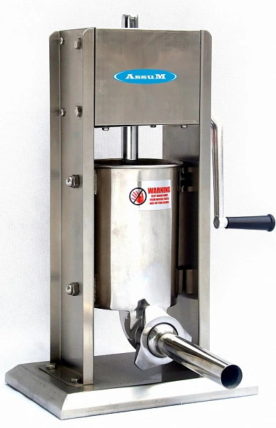 Шприц колбасный Assum SV-3 предназначен для приготовления различных мясных изделий, таких как купаты, колбасы, сосиски и сардельки, путем заполнения фаршем натуральной или искусственной оболочки на предприятиях общественного питания и торговли.
