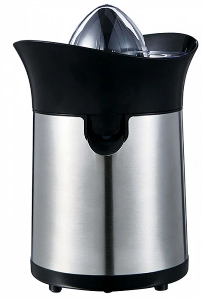 Она укомплектована двумя сменными пластмассовыми конусами для получения сока из разных видов цитрусовых фруктов.