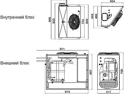 Габаритные размеры внешнего блока, мм 813(971)*417*700