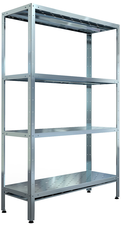 Имеет 4 перфорированные цельные полки и усиление полки (ребро жесткости) из нержавеющей стали AISI 430 толщиной 0,7мм