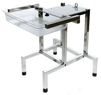 При желании стол можно также использовать вместе с гастрономической тележкой. Узкие передние ножки позволяют легко размещать тележку перед машиной.