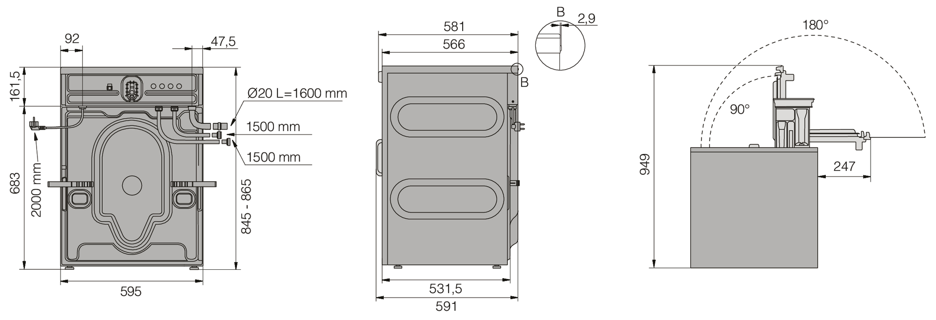 Длина сливного шланга, см 160