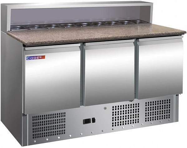 Стол для пиццы Cooleq PS903 используется на предприятиях общественного питания и торговли для хранения пиццы, салатов, сэндвичей и других блюд и ингредиентов к ним в охлажденном состоянии.
