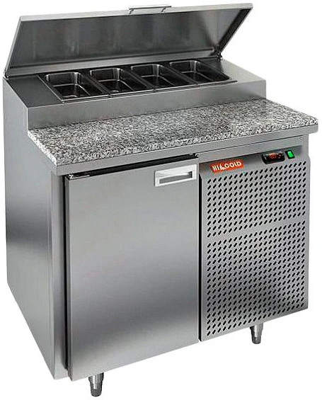 Стол для пиццы Hicold PZ2-1/GN (1/6H) со столешницей из нержавеющей стали и распашными дверями используется для раскатки теста и обработки ингредиентов для приготовления пиццы, а также для охлаждения и кратковременного хранения скоропортящихся продуктов и напитков на предприятиях общественного питания и торговли.