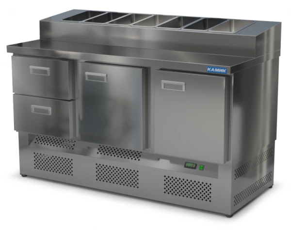Стол для пиццы Камик СОП-221573Н используется на предприятиях общественного питания и торговли для хранения пиццы, салатов, сэндвичей и других блюд и ингредиентов к ним в охлажденном состоянии.