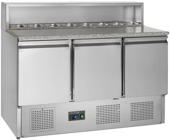 Стол для пиццы Tefcold PT930 используется на предприятиях общественного питания и торговли для хранения пиццы, салатов, сэндвичей и других блюд и ингредиентов к ним в охлажденном состоянии.