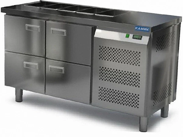Стол для салатов Камик СОН-041473 предназначен для кратковременного хранения ингредиентов для приготовления салатов на предприятиях пищевой промышленности, общественного питания и торговли.